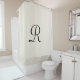 Dieser elegante Duschvorhang hat einen cremefarbenen Hintergrund in einem Imitat, das mit einem Krüppelmuster versehen ist. Monogramm ist schwarz. Eine schlichte und dennoch elegante Wohngestaltung für eine Hochzeit oder eine Hauswärmung. Alle Rechte vorbehalten © 2015 Alan & Marcia Socolik.