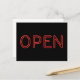 OFFENE rote Neonbriefe auf schwarzem Hintergrund Postkarte