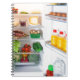 Offener Kühlschrank mit Essen Notizblock