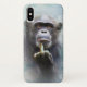 Ein lustiger, beleidigender iPhone X Fall mit einem Schimpansen mit Haltung, der den Mittelfinger gibt, den Vogel dreht. Original-Kunstwerk KL Stock.
