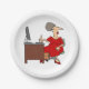 Eine Bürofrau an ihrem Schreibtisch. Dieses Design wirkt auf diese Paper-Teller sehr effektiv