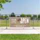 Dieser rustikale Charme und berufliche Now Open Business Banner zeichnet sich durch einen einfachen, natürlichen, ästhetischen Hintergrund aus Kraftpapier mit grob strukturierter weißer Schrift aus. Ersetzen Sie einfach Ihr Logo und aktualisieren Sie Ihre Geschäftsinformationen.