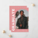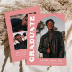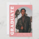 Stilvolle und trendige Ankündigung des Abschlusses mit dem Foto des Absolventen auf der Vorderseite mit einem Offset-Bogen-Foto. "Graduate" wird auf einem rosa Hintergrund in fett weißem Retrobuchstaben auf der Rose angezeigt. Personalisieren Sie die Titelseite der Ankündigung des Abschlusses des Erzbischofs, indem Sie den Namen, die Schule und den Abschluss des Absolventen hinzufügen. Die Karte kehrt zurück, um weitere 3 Fotos mit Platz für den benutzerdefinierten Text anzuzeigen, wie z.B. künftige Unis, Karrierepläne, Angaben zur Graduierungspartei, etc. Die rosa Ankündigung des Abschlusses ist sowohl für Absolventen der Highschool als auch für Absolventen der Uni ideal.