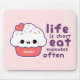 Kuchen mit Smiley und Zitat: "Das Leben ist kurz, essen oft Kuchen."
