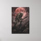 A hulking Ogre stands poised on a jagged mountain peak, clutching a heavy wooden club under the glow of a massive crimson moon. This atmospheric watercolor-style illustration captures a sense of primal dread and dark fantasy. This is perfect for fans of Epic Fantasy, Gothic Horror, and Tabletop RPG Art.