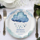 Oh Baby Cloud Babydusche Template Teller personalisiert Geschirr Dekoration niedlich Aquarellblau Wolken mit Regentropfen Babydusche personalisierte Teller