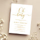 Ce baby shower minimaliste Oh Baby présente un script doré dans une calligraphie moderne élégante sur un arrière - plan blanc propre. Personnalisez avec vos informations ou cliquez sur "Cliquez pour customiser plus loin" pour modifier les styles, la taille et les couleurs des polices. Facile à customiser. Commandez aujourd'hui !