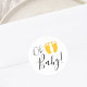 Diese niedlichen geschlechtsneutralen Baby-Duschaufkleber sind mit moderner Typografie und gelben Wasserfarbenfüßen von Babys dekoriert. Weil wir unsere Kunstwerke erstellen, werden Sie dieses exakte Bild von anderen Designern nicht finden. Original Wasserfarbe © Michele Davies.