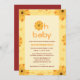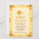 Die Vorderseite zeigt eine niedliche Babyduscheinladung in Gelb- und Marontypografie und oben ein "oh-baby"-Text mit einer Blume. Dieses Design ist niedlich und eignet sich ideal für Ihre Babydusche.