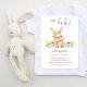 Cette baby shower invitation est tout simplement enchanteresse ! L'étoile du design est un petit lapin chéri, dépeint dans un style adorable et fantaisiste. Le lapin est orné d'une superbe couronne de tête fleurie, fabriquée à partir d'une variété de fleurs sauvages colorés qui ajoutent une explosion de beauté naturelle à la conception. La technique de l'aquarelle utilisée pour créer ce design lui donne une qualité douce et délicate, parfaite pour accueillir une jeune fille précieuse dans le monde. L'invitation est une véritable oeuvre d'art, avec chaque détail soigneusement conçu pour transmettre la joie et le bonheur de cette occasion spéciale. Dans l'ensemble, cette invitation est un beau mélange de mignon et élégant, ce qui en fait le choix parfait pour un baby shower qui célèbre la beauté de la nouvelle vie. Il est sûr de capter le coeur de tous ceux qui le reçoivent et de donner le ton pour un événement merveilleux et mémorable. Pour une personnalisation plus avancée de ce design, il suffit de cliquer sur le bouton "Customiser" ci-dessus ! Éléments correspondants disponibles. Voir la collection complète ici : https://www.zazzle.com/collections/little_bunny_baby_shower_girl_collection-119114193450573902