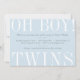 Diese moderne und bezaubernde Einladung wird Ihre Gäste sicher begeistern. Diese Einladung enthält OH BOY! TWINS in großen weißen Buchstaben und Ihre Duschinformationen in dunkelgrauem Druck in der Mitte auf einem hellblauen Hintergrund. Diese Einladung, wenn vollständig anpassbar.