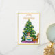 cartes de noël 2022 joyeux garçon avec cadeau sous l'arbre de noël oh cerf joyeux carte de noël