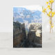 C'est un carte pour notes vide comportant une chanson et une prière de Natif américain et une photographie d'un pin solitaire dans le canyon grand.