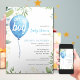 Oh Junge moderne Eukalyptus-blaue Ballons Babydusc Einladung