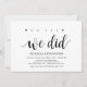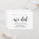 Oh oui, nous l'avons fait, carte d'invitation de réception de mariage en fuite. Cette carte d'invitation sur le thème du mariage en fuite kraft rustique est parfaite pour votre réception de mariage et votre fête de célébration après le mariage. Ajoutez vos détails dans une police / lettrage noir assorti.