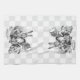 16" x 24" Küchentuch mit einem Vintagen Schwarzweiss-Alice im Wunderlandbild der wütenden Hutmacher-und März-Hasen, die Dormouse in eine Teekanne auf einem grauen und weißen Schachbrethintergrund anfüllen. See Cocktailserviette zusammenpassenden Papiers, Stoff-Tischset, PapierTischset und Untersetzer. Sehen Sie die gesamte Märchenland-Geschirrtuchsammlung im FOOD/BEV | Leinenabschnitt.