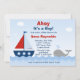 Cette invitation nautique mignonne de baby shower a un modèle de couleurs blanc et bleu rouge et attend juste pour être customisée avec vos détails. Cette invitation adorable comporte un voilier, des ressacs et une baleine de médisance. Personnaliser avec vos détails de baby shower.