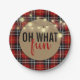 OH WHAT FUN Black/Red Kariert Paper Plate - Der perfekte Teller für Ihre Weihnachtsfeier! OH WHAT FUN ist in fett, Typografie auf einem rustikalen Kraftsuntergrund umgeben von schwarz und rot kariert. Die trendigen Lichter hängen oben. So viel Spaß! Teil einer Sammlung.