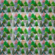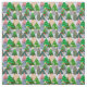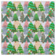 Dieser Stoff hat ein Design von Weihnachtsbäumen in verschiedenen Tönen grün, rosa, silber und gold mit verschiedenen Dekorationen.