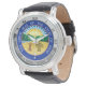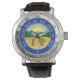 Uhr, Vintage Männeruhr mit schwarzem Lederarmband