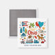 Commemorate your trip to the state of Ohio with this modern keepsake magnet, featuring hand-drawn style illustrations of iconic food, animals, landmarks, landscapes, and culture. Personalize it to mark your U.S. adventure and create a memory you can hang up on the fridge and gift to your family members.