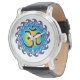 Uhr, Vintage Männeruhr mit schwarzem Lederarmband