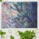 Vibrierende perlige Purpur, Blues, Rosa und Gelbs in diesem Ohrschnecken-Muschelteetuch für eine luxe Küstenküche.