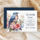 Oiseau bleu Fleurs roses Anniversaire Merci