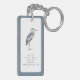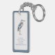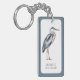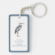 Ce magnifique porte - clé à double face et personnalisé présente un héron bleu côtier dans les tons bleu et gris sur un arrière - plan blanc à la bordure bleue assortie. Personnalisez avec votre choix de nom et de texte spécial à l'avant et à l'arrière. Idéal pour les sacs cadeaux et les faveurs de fête.