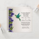 Invitations de mariage d'oiseaux avec de beaux colibris et une bordure violette de gentiane violette. Cet élégant faire-part de mariage de colibri est facilement customisé pour votre événement en ajoutant simplement vos détails dans le style de police, le libellé et la disposition de votre choix. Vous pouvez également choisir le style arrière - plan de votre choix à l'arrière de l'invitation. Vous pouvez choisir le design des colibris, ou le même arrière - plan lumineux à l'avant de l'invitation.