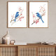 Oiseaux bleus Fleurs de cerisier Aquarelle Mur Art