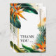 Voici le Carte de remerciements Mariage Birds of Paradise Bliss, une expression sincère de gratitude mise sur le décor vibrant et tropical de l'oiseau des fleurs du paradis, des feuilles verdoyants et des lignes droites délicates. L'avant de la carte présente un design épuré avec une légende chaleureuse et appréciée de "Merci", mêlant harmonieusement gratitude et beauté enchanteresse de la collection. Au fond, la même toile de fond captivante sert de toile pour un espace de texte personnalisable. Ici, le couple peut ajouter leurs noms, la date du mariage et l'emplacement du lieu, créant une touche personnalisée qui relie le message de remerciement aux souvenirs chers de la célébration. Ce détail soigné ajoute une touche de chaleur et d'intimité supplémentaire, faisant de la carte un souvenir précieux pour les destinataires. Le Carte de remerciements Mariage Birds of Paradise Bliss est un mélange harmonieux de gratitude et d'élégance tropicale, assurant une expression de remerciement chaleureuse et visuellement étonnante qui résonne avec l'esprit vibrant de la collection.