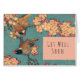 Oiseaux japonais et fleurs - Ce beau tableau d'oiseaux et de fleurs est un tableau asiatique vintage redessiné par Katasushika Hokusai peint en 1811, redessiné pour notre ligne cadeau. Il présente des chicadés et des fleurs d'arbres roses, sur un bel arrière - plan bleu turquoise.