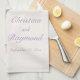 Un mignon couple inséparable en dessin graphique d'une cage d'oiseau ouverte accrochée à un arbre de printemps fleuri avec des coeurs. Design moderne chic mariage moderne partie de la cage d'oiseau romantique mariage fixe ensemble. Modifiez cette serviette de cuisine mariage commémorative avec vos noms de mariée et de mariée et la date spéciale du mariage. Parfait pour un cadeau unique de conservation au couple heureux ou juste pour commémorer votre journée spéciale. Dessin unique et design par Sarah Trett.