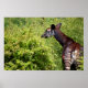 Okapi (Okapia johnstoni) von hinten gesehen unter der Vegetation