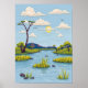 Entdecken Sie die atemberaubende Schönheit des Okavango-Deltas, einer üppigen Oase im Herzen Botswanas. Dieses Kunstwerk zeigt das komplexe Netz von Wasserstraßen und üppigen Überschwemmungsgebieten des Deltas.