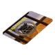 A shot of a Wooden Route 66 Sign between Edmund and Chandler Oklahoma. With blue sky, fence and a Golden Field with tree in the back ground. Thats bright and colorful haben wir Square MAGNET.