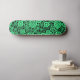 Ein Skateboard mit interessantem und abstraktem Design, bestehend aus verschiedenen runden Formen in verschiedenen Stilen verbunden durch dünne Linien wie ein Netzwerk oder ein Ökosystem.