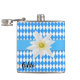Oktoberfest thematisierte Trinkflasche im klassisch blauen und weißen Rautenmuster für das Oktoberfest, mit Grafiken eines blauen satinierten Farbbands in der Mitte. Die Grafik eines weißen Edelweiss aus Single schmückt die mittlere Fassade der Flasche. Personalisieren Sie den eigenen schwarzen Text, vorne, für sich selbst oder als charmante Geschenkidee für sie.