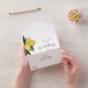 Eine Hochzeitseinladung mit Ölgemälden aus Zitronenmotiv. Es verfügt über eine trascheppige Karte, um Ihnen und Ihren Gästen das Leben zu erleichtern.