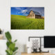 Old Barn in Field of Spring Wheat Poster