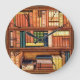 Custom wall clock featuring a vintage illustration of colorful old books on wooden bookshelves and Roman numerals (can be removed). A fun clock for study or the room of an avid reader, teacher, librarian, writer, or any book lover.