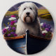 Old English Sheepdog auf Paddle: Ein Landschaftlic Button