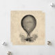 Old fashioned hot air balloon art featuring a vintage illustration with a script style beige paper background. Makes a great gift for anyone who likes aviation, hot air balloons, and old fashioned antique art.