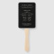 This old money inspired black and ivory wedding program hand fan features refined serif typography with an elegant script heading, framed by a bold black border for a timeless and distinguished presentation. The front highlights the wedding details in a classic layout, while the reverse side showcases the ceremony order and wedding party in a sophisticated black tie design.