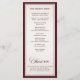 This burgundy and ivory wedding program card features a timeless minimalist layout framed with a rich maroon border and refined typography. The structured format clearly presents ceremony details while maintaining a sophisticated old money aesthetic.