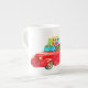 Diese Tasse ist perfekt für Ihre Feiertagsgetränke geeignet. Sie verfügt über einen alten roten LKW mit Geschenkpackungen und einen Weihnachtsbaum, der zum Verzieren bereit ist.