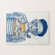 Illustration of an elderly sailor in a striped shirt smoking a pipe while holding a sandwich. Tattoos are visible on his arms, and maritime elements surround the character.