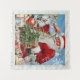 This vintage-inspired design of Old Saint Nick holding a strand of Mistletoe, features a snowflake, a snowman, Christmas ornaments, a Christmas tree, and festively wrapped presents. A perfect touch to your holiday decor!