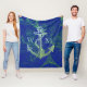 Diese nautische Fleecedecke zeigt eine große Ankerillustrierung auf blauem Hintergrund mit einem Overlay einer Vintagen Weltkarte. Auf der Flagge steht "Willkommen" unten. Entworfen von dem weltbekannten Künstler ©Tim Coffey.